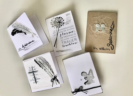 Sie gestalten nach Vorlage je zwei Gratulationskarten, zwei Schön, dass es dich gibt Karten und zwei Trauerkarten.